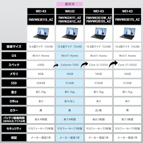 あわせて 富士通 ノートパソコン FMVWJ2A15W_AZの最適スペック比較と価格解説 も参考にしてください。