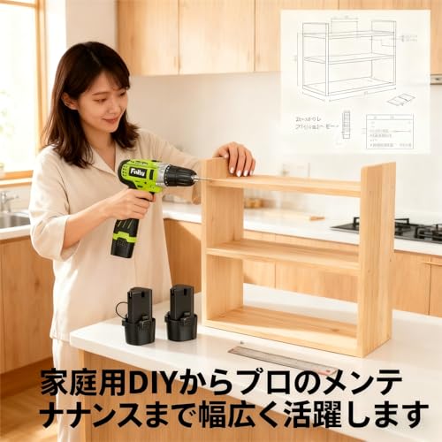この充電式電動ドライバーは、家庭用DIYや家具の組み立て、棚の取付けなど多種多様な作業に対応します。