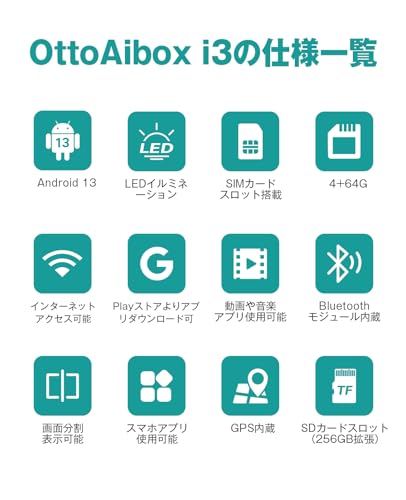 ここでは「オットキャスト OTTOCAST OttoAibox i3 CarPlay AIボックス(Android 13搭載 4+64GB)」を例に、その特徴とメリットを専門的に解説します。