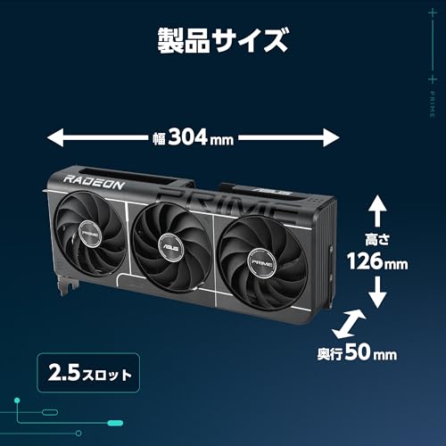 ASUS PRIME-RX9060XT-O16Gは、16GBのGDDR6メモリとOC(オーバークロック)エディションによって、標準モデルよりも高いコアクロックを実現しています。