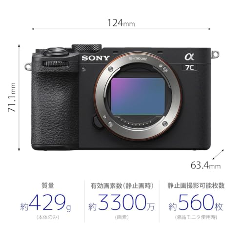 - ILCE-7CM2ボディ ブラック:軽量でコンパクトながら、約3300万画素のフルサイズセンサー搭載。