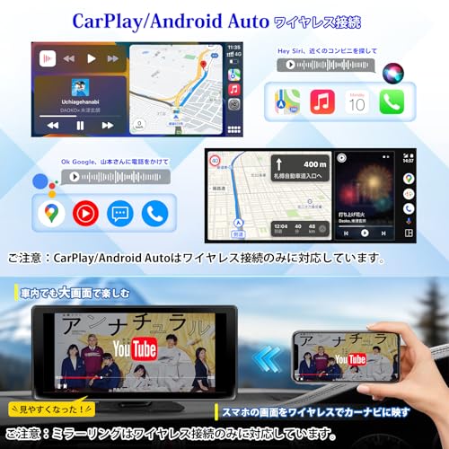 ワイヤレスCarPlayやAndroid Autoでスマホ操作もスムーズ、二画面表示機能でナビと動画や通話を同時に使うことも可能です。