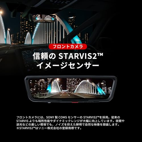 前後200万画素カメラが60fpsで鮮明な映像を記録可能で、SONY製のイメージセンサーを採用しているため、夜間でもフリッカー対策やHDR機能で安定した映像が得られます。