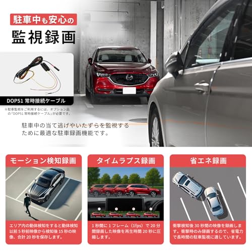特に駐車監視録画は、いたずらや接触事故に備える際に効果的です。