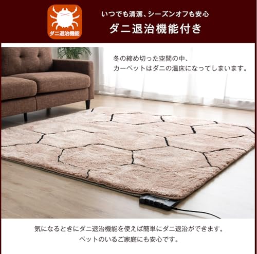 タンスのゲンのホットカーペット(168×168cm)は、ダニ退治機能を備え、清潔さと安心を両立しています。