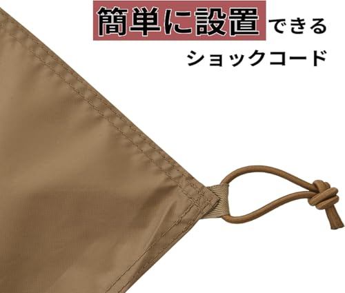 このグランドシートは、耐水加工が施されており、地面からの湿気や砂利、汚れをしっかり防ぎます。