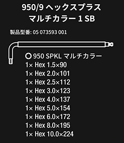Wera(ヴェラ) 05073593001 | 950SPKL/9SMN マルチカラーヘックスキーセット 1.5~10.0mm ブラックレーザー仕上げ六角レンチ9本セット 【日本正規輸入品】 最後 画像