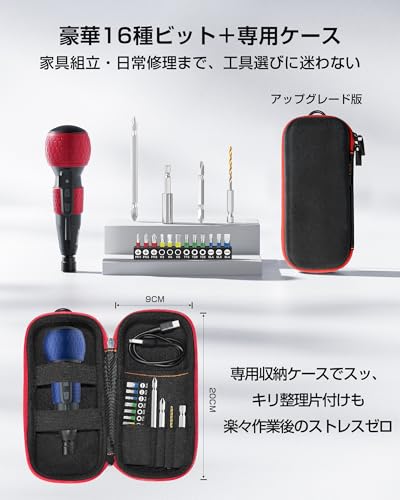収納ケース付きで持ち運びやすく、紛失防止にも効果的。 - デメリット:16点ビットの豊富さは充実しているものの、特殊なサイズや形状のネジには対応していない点は留意が必要です。