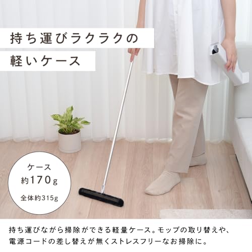 ブラシをケースに通すだけでモップ面が自動的にクリーニングされるため、取れたホコリを手で触れることなく処理可能です。