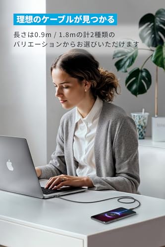Ankerのこのケーブルは、絡まりにくい素材と高耐久性を兼ね備え、これまでのUSBケーブルでよくあったイライラを大幅に軽減します。
