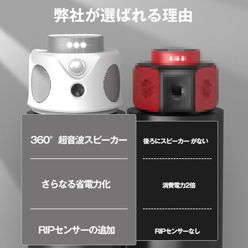 360度全方位カバーで死角がなく、強力な超音波とLEDフラッシュライトで害虫やネズミを効果的に追い払います。
