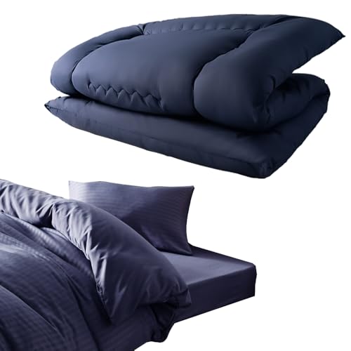 そこでおすすめなのが、アイリスプラザの「丸ごと洗える敷き布団 日本製 抗菌防臭 防ダニ シングル」と「寝具カバー3点セット シングル ダークネイビー ホテルスタイル」のセット買い商品です。