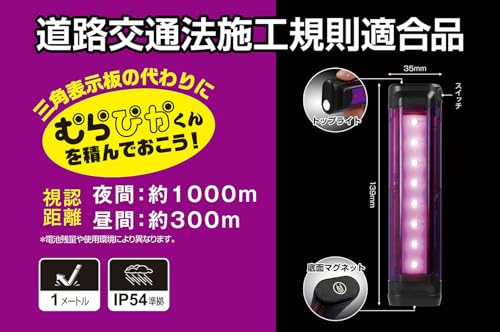 これらのスペックは、長時間の道路や野外での警告灯として十分な持続力を示しており、頻繁な電池交換や充電の煩わしさを軽減します。