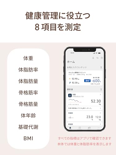 スマホ連動や自動認識機能を備え、乗るだけで簡単に測定ができるコンパクト設計がユーザーから支持されています。