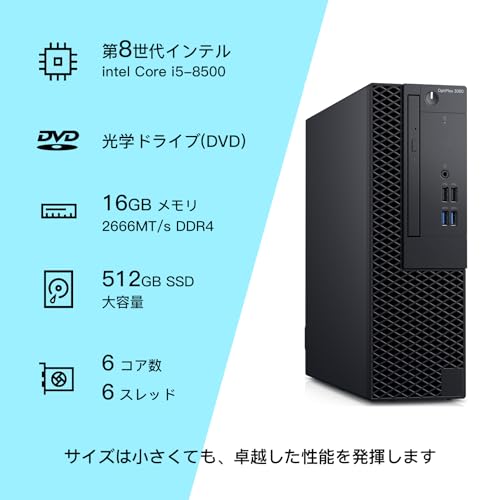 デルのOptiPlex 3060SFFは、第8世代Core i5-8500プロセッサーや16GBのメモリ、512GBのSSDを搭載した整備済みの中古パソコンで、これらのニーズに応える性能を備えています。