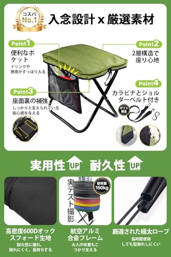 収納袋一体型の携帯チェアは、収納効率だけでなく耐久性も重要です。