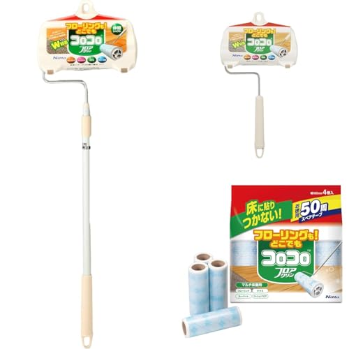 中でも「ニトムズ コロコロ フロアクリン フローリング・カーペット対応 本体(伸縮ロング) + 本体(ハンディ) + スペア 50周 4巻」は、伸縮可能なロングタイプの本体と持ち運びに便利なハンディタイプ、さらに交換用スペアがセットになっているため使い勝手の良さが評価されています。