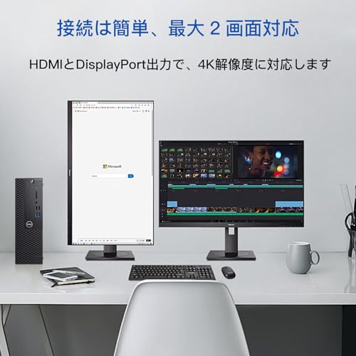 近年、パソコンの作業効率向上を目指す方々にとって、マルチディスプレイ環境の構築は重要なテーマの一つです。デル デスクトップパソコン OptiPlex 3060SFFは、4K HD対応のHDMIとDisplayPort出力を備え、最大2台のモニター接続が可能。