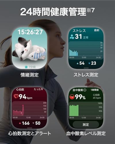 これにより、心拍数や血中酸素濃度、ストレスレベルの測定も高い精度で行い、健康データをリアルタイムにモニタリングできます。