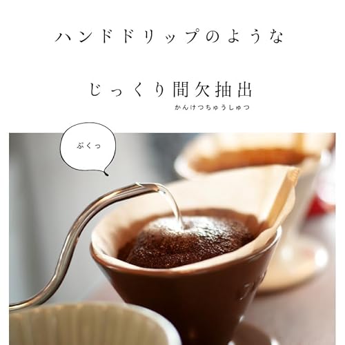 このドリップ式コーヒーメーカーは、ハンドドリップの味わいを再現するために「間欠抽出」でじっくりと蒸らしながら抽出する点が特徴。