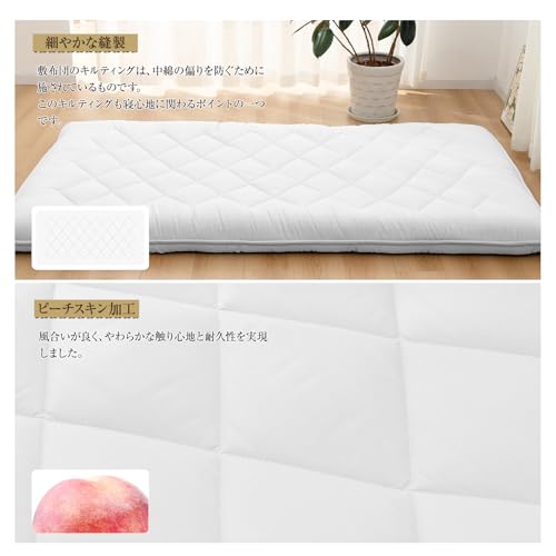 TEIJINのマイティトップ中綿使用のこの敷布団は、抗菌・防臭・防カビ・防ダニ機能も備えているため、衛生面が気になる方に適しています。