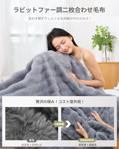 HAGOOGI電気毛布は、表裏両面に高密度のラビットファー調素材を採用。