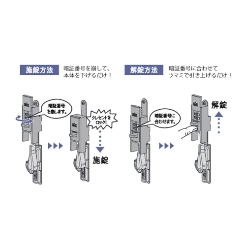 - メリット:簡単な取り付けで専門知識不要、番号変更で防犯効果を持続、クレセントの不正解錠を防ぐ、ブラックで目立ちにくいデザイン