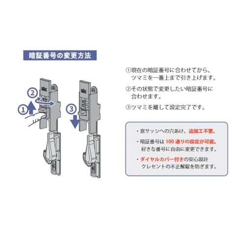 特に窓破りやクレセントの不正解錠を防ぐダイヤル式防犯錠として、手軽に導入できる点が評価されています。