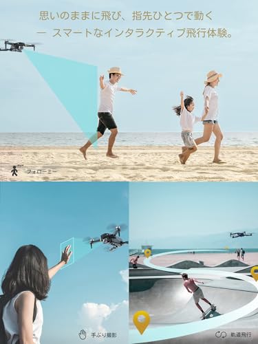 また、フォローミーモードやウェイポイントモード、ジェスチャーでの撮影など、初心者にも扱いやすい多機能な操作が特徴です。