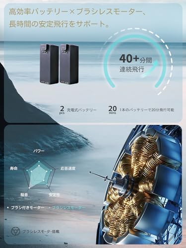 - メリット: 長時間飛行が可能なため撮影機会が増え、安定性能が高く初心者でも安全に操作できます。