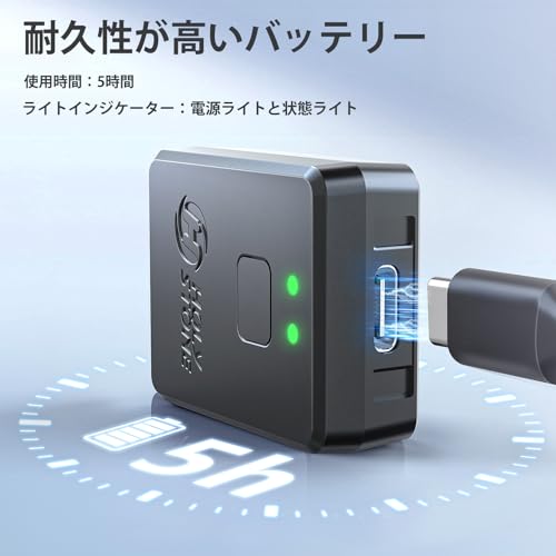 内蔵式バッテリーで最大5時間稼働、Type-Cで手軽に充電 - 注意点:充電ケーブルは別途用意が必要