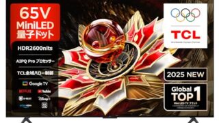 TCLの65V型4Kテレビ・65T8Cは、量子ドット搭載による鮮やかな色彩表現や、最新の倍速パネルによる滑らかな動き、さらにGoogle TVの直感的な操作機能が評価されているモデルです。