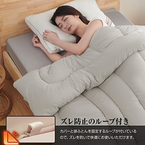 この掛け布団は身体のラインに沿うボディフィットキルトを採用し、寝返り時にも隙間ができにくい曲線キルティング縫製を施しています。