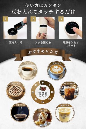 - 【評価】【anan掲載xバリスタ監修】 上位モデル 電動コーヒーミル ステンレス刃 コードレス コーヒーミル コニカル式 USB 充電式 水洗い可能 コーヒーグラインダー Leggero『タッチパネル簡単操作/挽き目39段階調整』 (ブラック)の挽き目調整の幅と性能