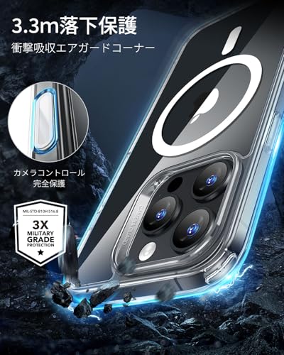 ESR iPhone16ProMax ケース【カメラコントロール保護 ・3倍米軍MIL規格】 MagSafe対応 いphone16promax 用 カメラボタン 黄変防止 耐衝撃 軍用規格保護 指紋防止 高耐久性 マグネットスマホケース ワイヤレス充電対応 クリア iphone16promaxケース Classicアイフォン16プロマックスケース (HaloLock) 透明 最後 画像