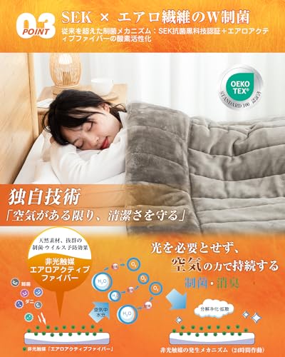 非光触媒制菌で雑菌を抑え、静電気防止加工も施された衛生的な冬用毛布です。