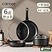 CAROTE カローテ フライパン 鍋 セット IH&ガス火対応 6点 PFOAなどの有害物質不使用 プロ仕様 5層構造 チタンコート 軽量 取っ手のとれる 洗練されデザイン コンパクト収納 1人暮らしセット 新生活セット 取っ手のとれる こびりつかずに お手入れ簡単 黒 ブラック 中間 画像