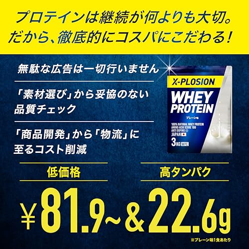 エクスプロージョン プロテイン 3kg ホエイプロテイン バニラ味 WPC X-PLOSION 日本製造は、高品質なホエイプロテインを求める方に最適な選択肢です。