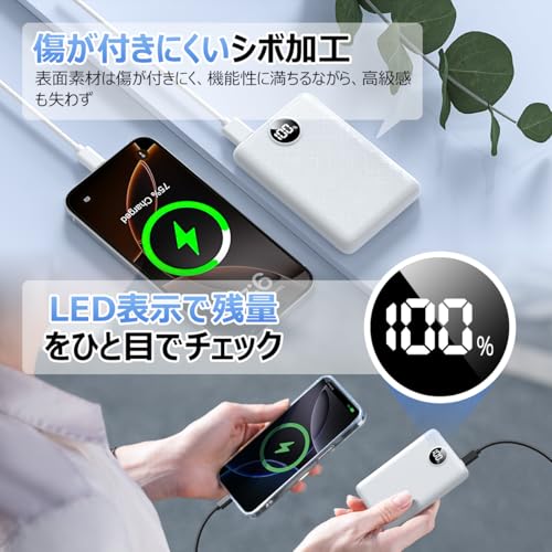 モバイルバッテリー大容量 20000mAh 【2025新登場·超薄型】モバイルバッテリー 軽量 小型 急速充電 3台同時充電 スマホ充電器 Type-Cポート出入力 2.4A 急速充電 コンパクト持ち運び便利 PSE技術認証済 安全回路保護 機内持ち込み可/出張 携帯充電器 スマホ充電 iPhone/Android/iPad/AirPodsなど各種対応 (ホワイト) 最後 画像