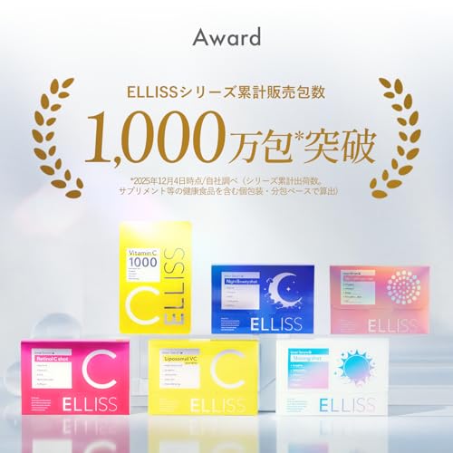 エルリスの飲むビタミンC美容液は、高濃度1000mgのリポソーム化ビタミンCを採用し、吸収効率と持続性に優れています。