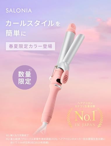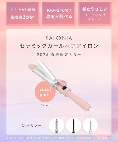 SALONIA(サロニア)のセラミックカールヘアアイロン32mmは、春夏限定のメロウコーラルピンクカラーで登場し、海外対応の利便性も備えた人気のカールアイロンです。