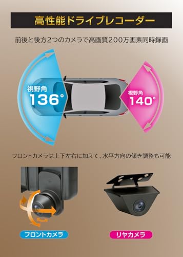 前後2カメラモデルであればより広範囲の記録が可能となり、日々のドライブの安心感を大いに向上させるでしょう。