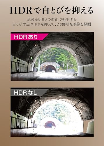 夜間録画もHDR技術によって明暗をバランス良く処理し、ナンバープレートや歩行者の識別がしやすい映像品質を保ちます。