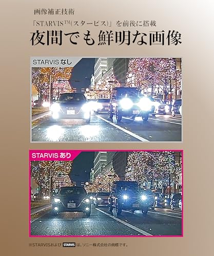 前後カメラはそれぞれ高画質記録が可能で、夜間もクリアな映像を撮影できる方式を採用しています。