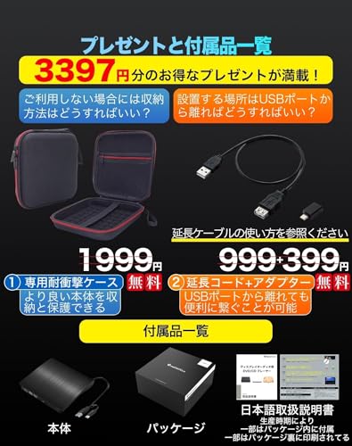 また、DVD・CDドライブケースや延長コードといった便利な付属品もあり、機器の保護と使用時の安全性を高めています。