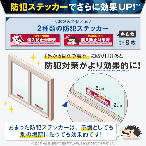 さらに、防犯ステッカーが付属していることで、外からの視覚的な抑止効果も期待できる点が特徴です。