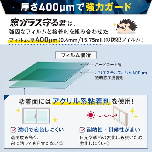 ここでは「窓ガラス守る君」防犯フィルム 400ミクロンについて、購入前に知っておきたいポイントを解説します。