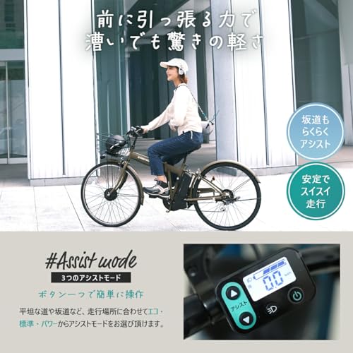 本モデルは電動アシスト自転車として、前輪駆動のアシストシステムとの組み合わせにより、よりスムーズで自然な走行感を目指しています。