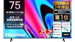 テレビ 【Amazon限定】ハイセンス75E60N 4K大画面テレビ最新モデル解説 ハイセンス75E60Nは4K大画面、HDMI2.1対応でゲームや動画視聴が快適です。2024年最新モデルを安く購入したい方へ、特徴と選び方をわかりやすく解説します。 2025/09/26 2025/10/07 テレビ