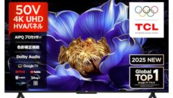 テレビ 2025年最新TCL 50V型4Kテレビ|高機能&お得価格解説 2025年モデルのTCL 50V6Cは4K液晶・Wチューナー内蔵で高画質・高音質を実現。Alexa音声検索やAirplay2対応で操作も快適。最新機能を備えたお得な価格での購入方法も解説します。 2025/09/29 2025/10/07 テレビ